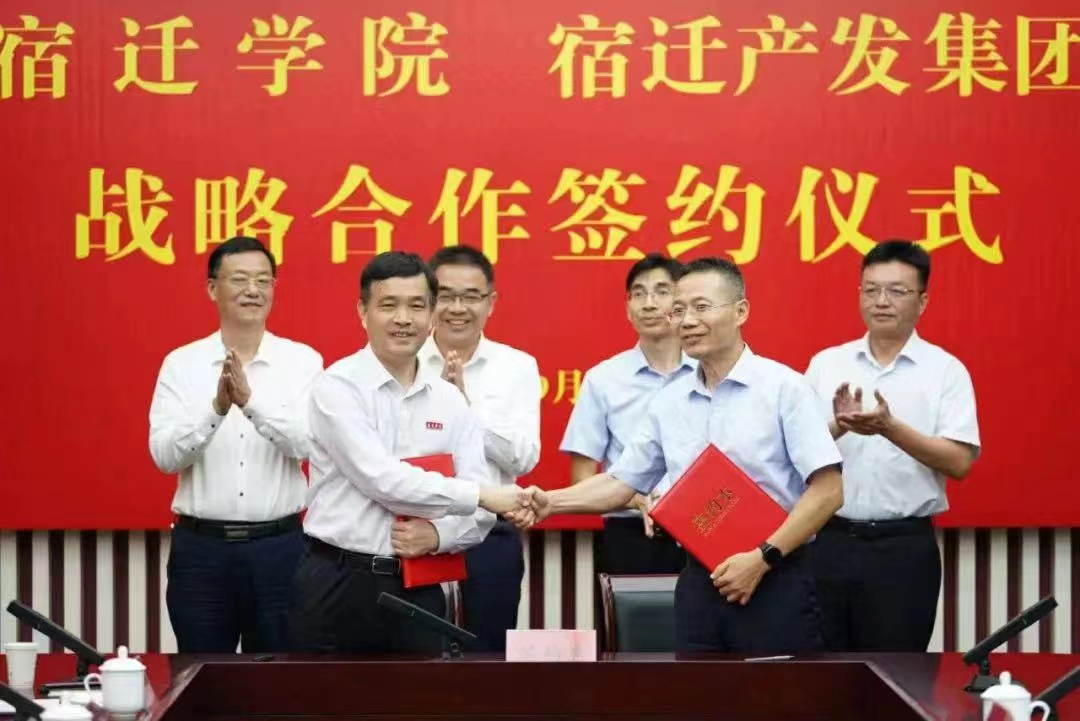 仪式上,双方共同签署《宿迁学院-宿迁产业发展集团有限公司战略合作协议书》。