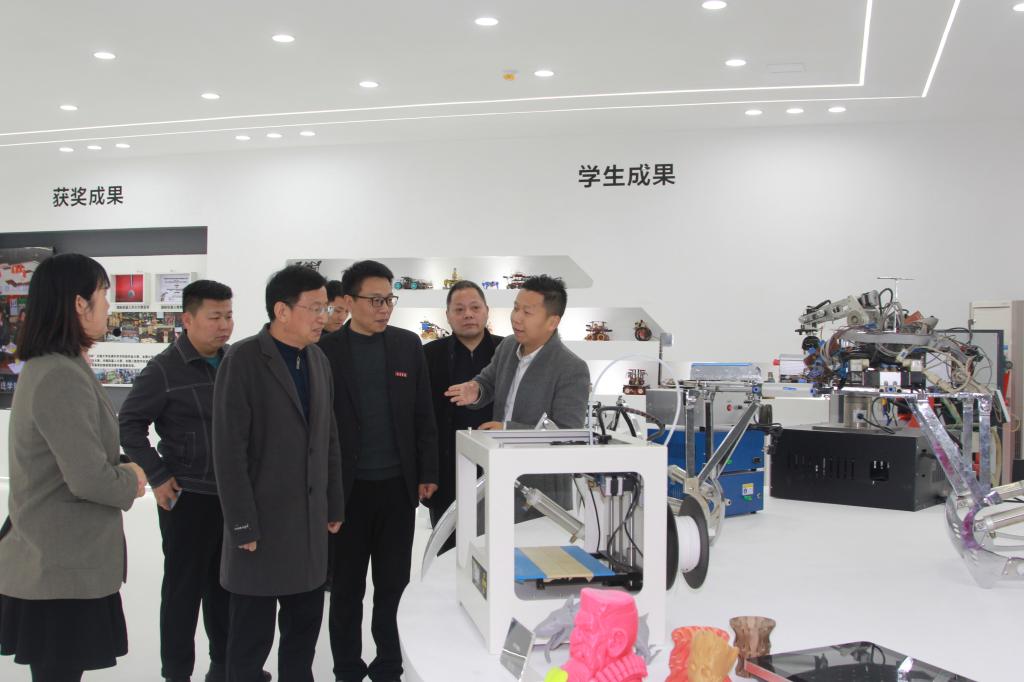 在调研过程中,王军善一行先后参观了机电工程学院实验室、建筑工程学院实验室和校史馆。在机电工程学院,分别参观了宿迁市橡塑模具联合研发中心、先进自动化联合实验中心,以及工业 ARM 控制器、手机消毒机、伞机、闪厨、冰淇淋机等数十项孵化成果。调研组对我校科研团队自主开发完成的大型船舶精度管理软件颇感兴趣,该软件已在江南造船厂等国内多家船厂使用。在建筑工程学院,分别参观了江苏省大学生结构创新大赛特等奖作品“拾光大厦”、江苏省装配式建筑与智能建造工程研究中心和建筑工程实验中心,对我校产教融合基地建设以及取得的产学研成果给予了高度肯定。在校史馆,参观了我校发展历程图展,对我校20年来取得的发展改革成就给予了高度评价。