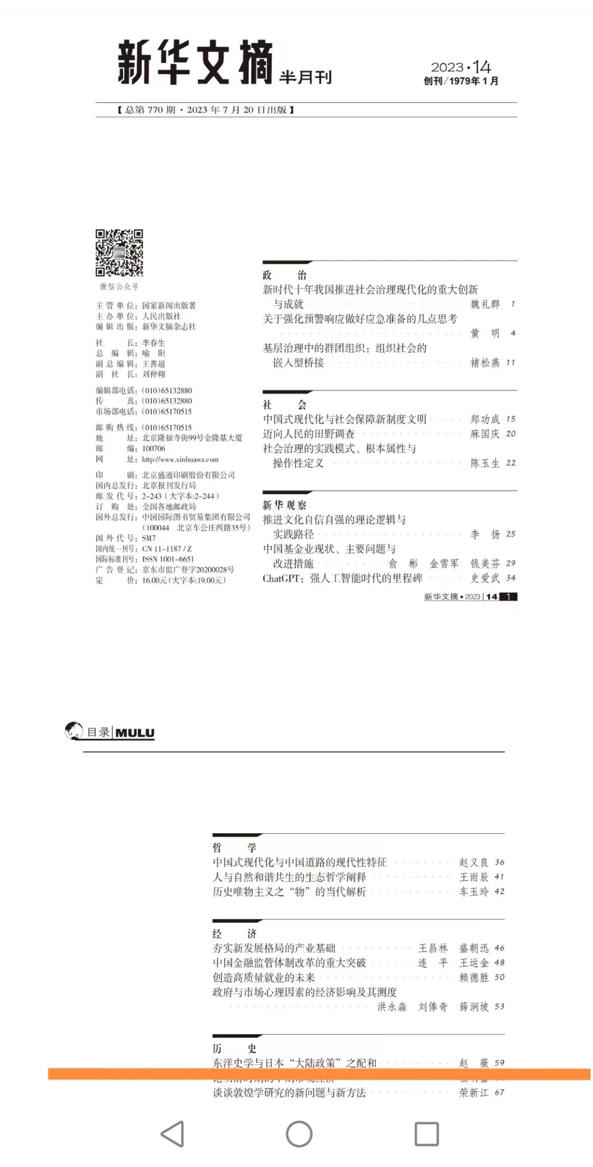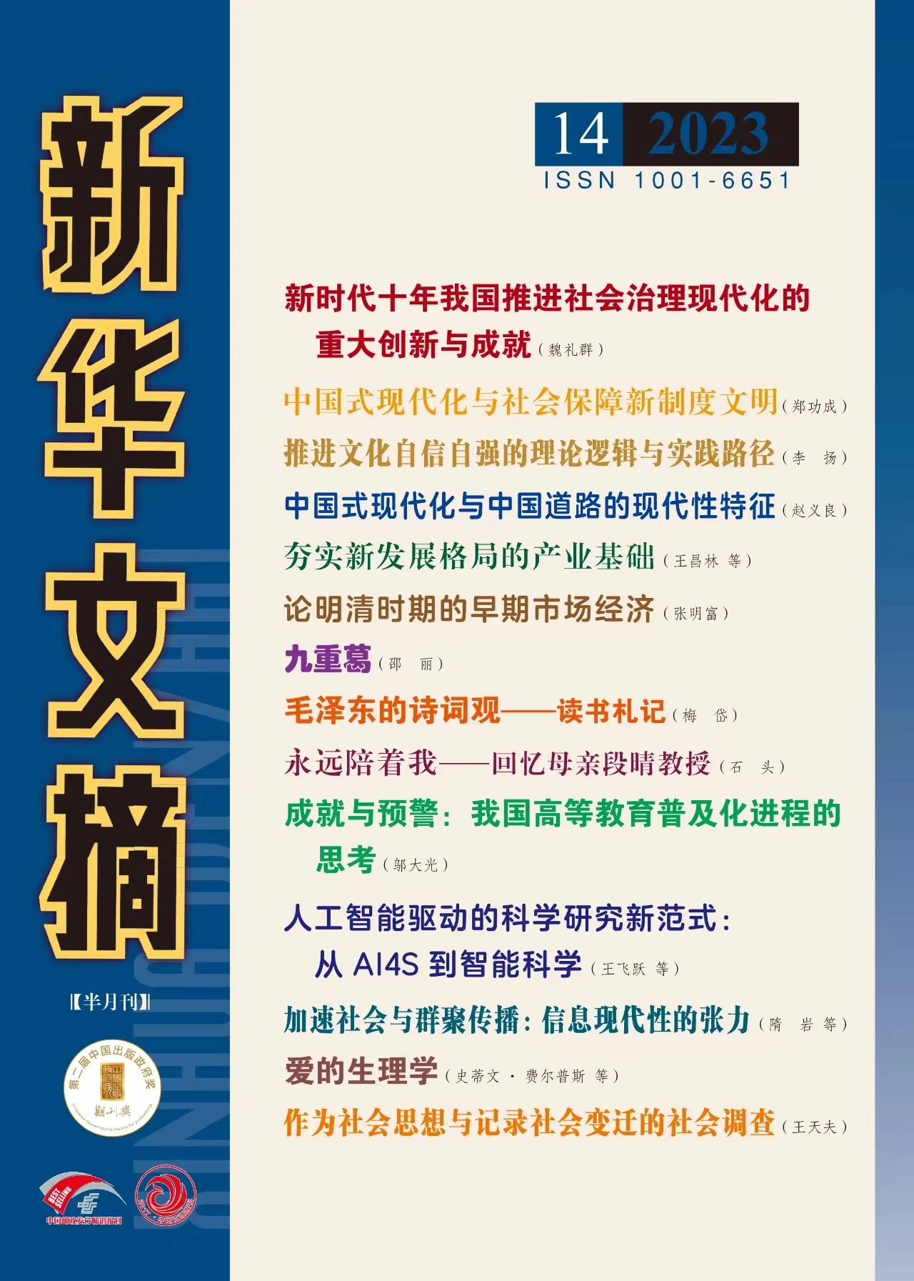 《新华文摘》创刊于1979年,由国家新闻出版署主管、人民出版社主办。作为大型理论性、综合性、资料性文摘类权威期刊,《新华文摘》兼具思想性、学术性、权威性和可读性,是我国最具影响的哲学社会科学文摘类杂志之一。《新华文摘》用5个整版全文转载了赵薇教授的论文,彰显了该文的学术价值,也是对赵薇教授科研能力和学术水平的充分肯定。