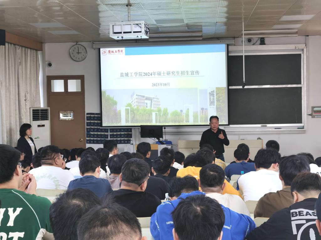 考察期间,盐城工学院材料科学与工程学院、机械工程学院负责人在第六阶梯教室进行了研究生招生宣传。盐城工学院研究生院、我校科技处(社科处、研究生处)、信息工程学院、机电工程学院等相关部门和学院领导参加活动。