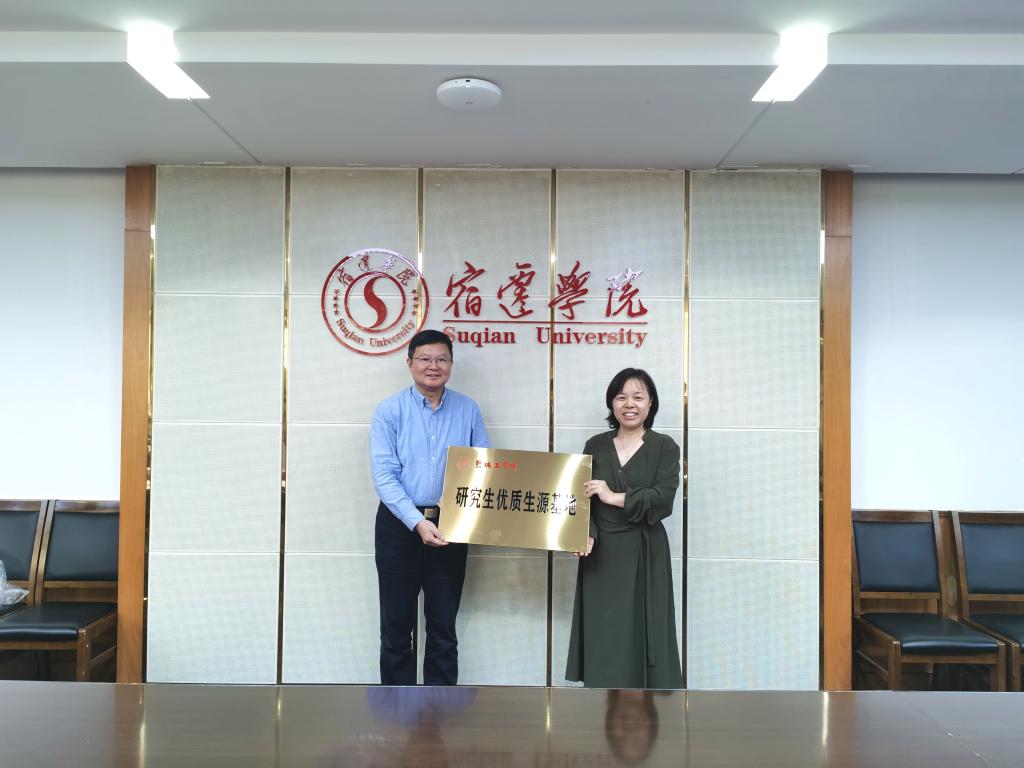 崔刚副校长首先充分肯定了我校的办学特色与定位,然后介绍了盐城工学院的发展历程和取得的成绩,并就双方联合培养研究生提出了期望。他还代表盐城工学院授予了宿迁学院“研究生优质生源基地”铭牌。与会双方围绕研究生联合培养协议、导师遴选与管理、研究生生源基地建设等工作展开了深入交流。