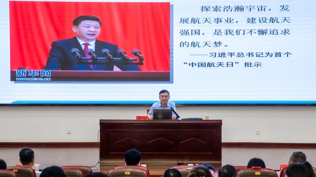 李明作了题为《弘扬科学家精神不懈追求航天梦》的专题报告。从“伟大精神源自崇高信仰”切入,生动诠释了“自力更生、艰苦奋斗、大力协同、无私奉献、严谨务实、勇于攀登”的航天传统精神。报告内容丰富、立意高远,在现场引发强烈共鸣。