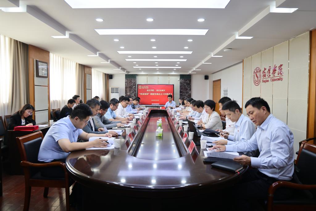 宿豫区、高新区相关部门负责人,学校相关职能部门及二级学院负责人参加会议。