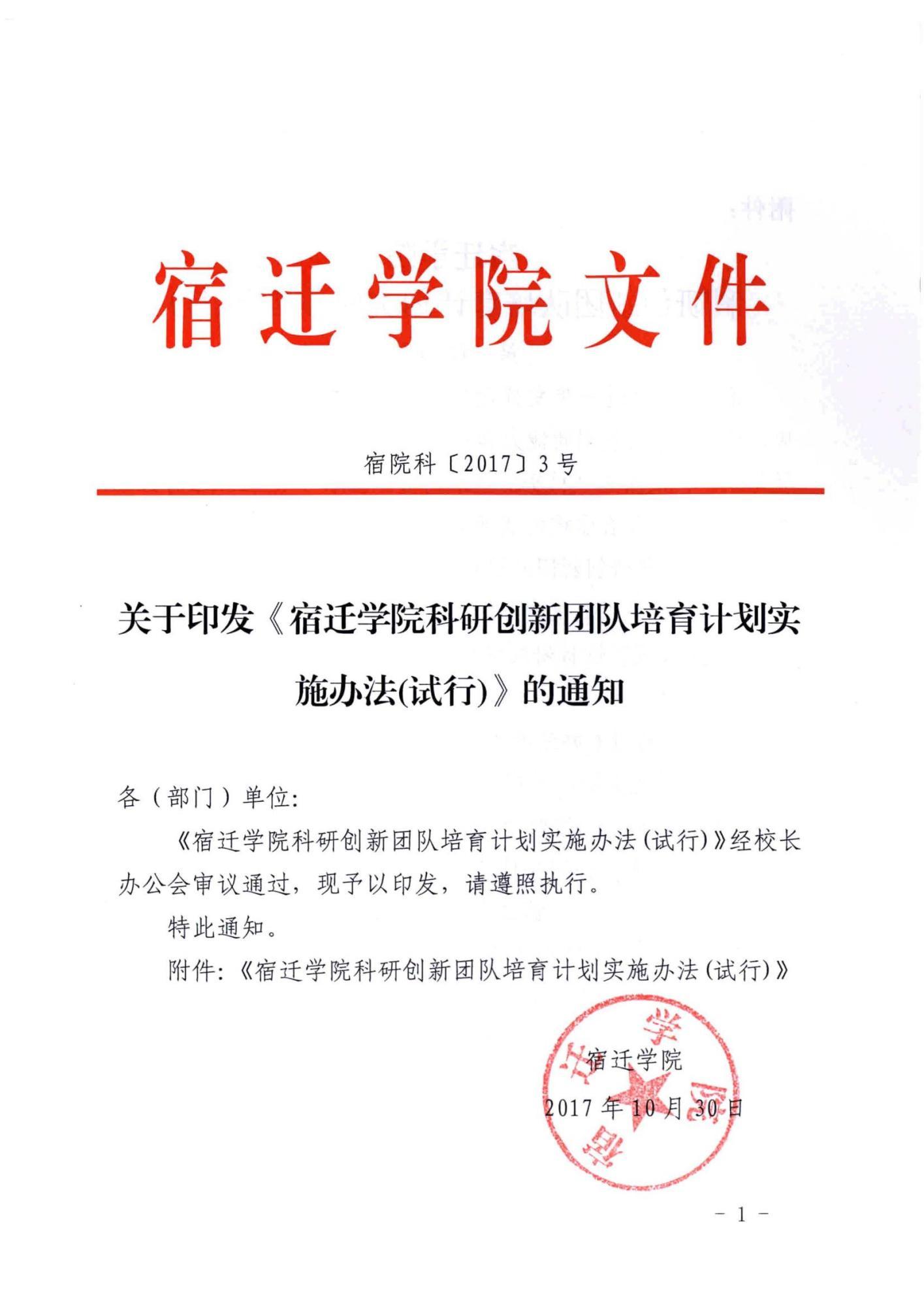宿迁学院科研创新团队培育计划实施办法(试行)